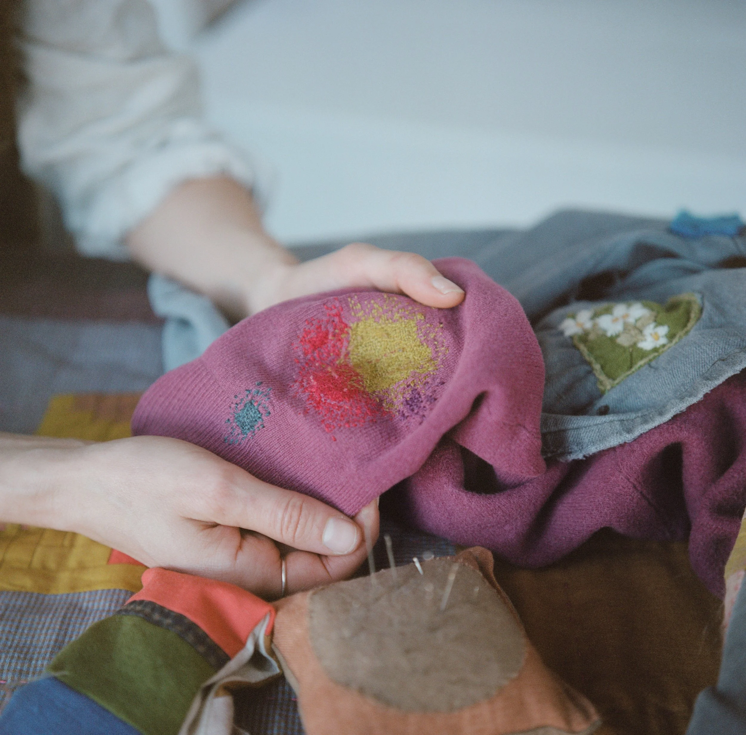 I come from a working-class background, where the craft of making do and mending was passed down through generations. There’s something truly magical about slowing down, calming the nervous system, and taking the time to repair and re-love worn items.